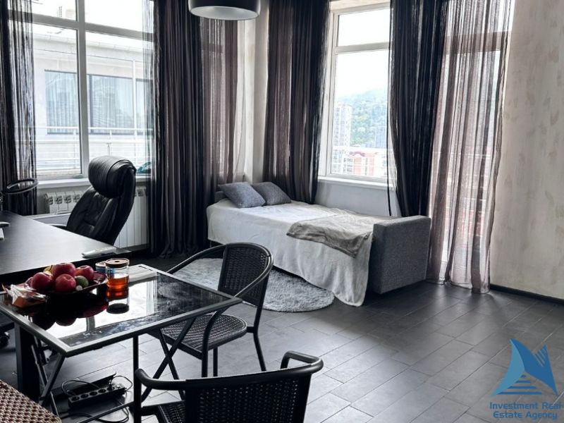 იყიდება ნათელი, კომფორტული ბინა ბათუმი პლაზაში, ჭავჭავაძის ქუჩაზე, ზღვის ხედით. ცალკე 1 ნათელი საძინებლით, არსებული ავეჯითა და ტექნიკით, აივნით. 80 მ2, მე-14 სართული, ფასი 98 000 $.