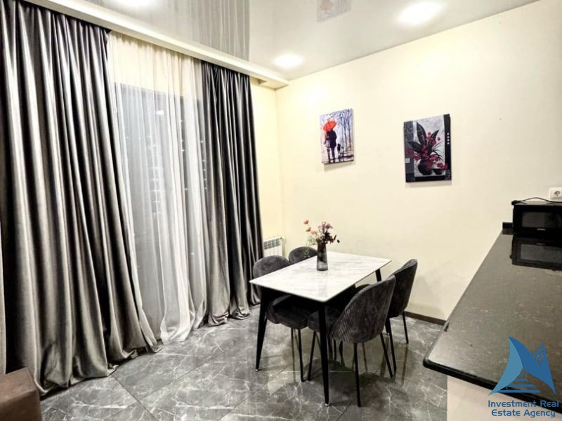 Apartment for sale on Shartava Street, Bagrationi Intersection, in the Gumbati complex, with 2 bedrooms, 2 bathrooms, balcony, large living room and kitchen, with all necessary furniture and appliances, 76 m2, 9th floor, price: $125,00