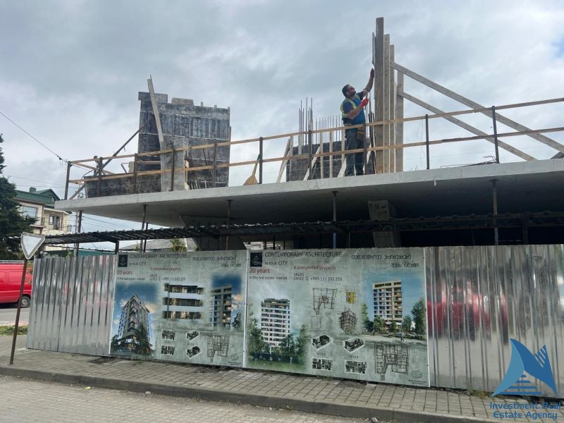 Apartments for sale in Kobuleti, in a complex under construction, at the intersection of Ninoshvili and Rustaveli, entrance from Ninoshvili Street, 100m2, price per 50m2 square meter: $770