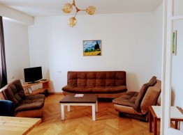 Apartment for sale in Tbilisi, on Freedom Square near the Parliament Building, on Shevchenko Street, with 2 bright bedrooms, balcony, isolated kitchen, furniture and appliances, additional 75m2 attic, the apartment is 73m2, 7th floor, price: $350,000