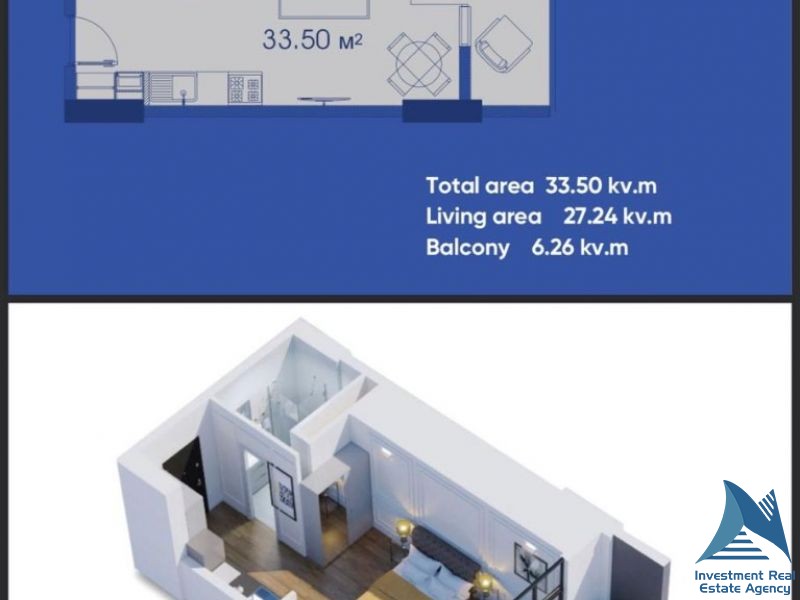 Standard studio apartments for sale, renovated by the developer using the "green frame" design