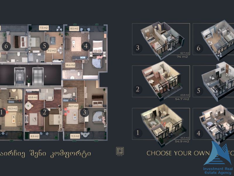 1 და 2 ოთახიანი ბინებით დაკომპლექტებული საცხოვრებელი კომპლექსი მშვიდ და მყუდრო გარემოში. ახლომდებარე ტერიტორიებზე გახლავთ 6 მაისის პარკი, მნიშვნელოვანი ადგილი პატარებისათვის. 10 -სართულიანი სახლი უდაოდ იქცევა კომფორტულ საცხოვრებლად თავისი ბინადართათვის. ბინები 31 მ2-დან, რომლებიც ბარდება შავი და თეთრი კარკასის მდგომარეობით. საწყისი ფასი 1 მ2 - 1350$-დან. აქვე, შეგიძლიათ ისარგებლოთ განვადებით, წინასწარი შენატანი 30 %, დანარჩენი კი გადანაწილდება 18 თვის ვადით.