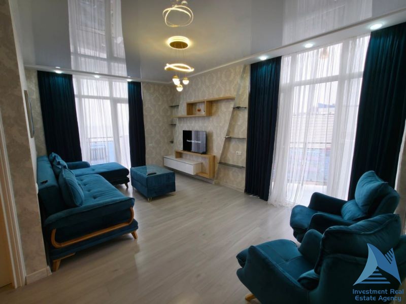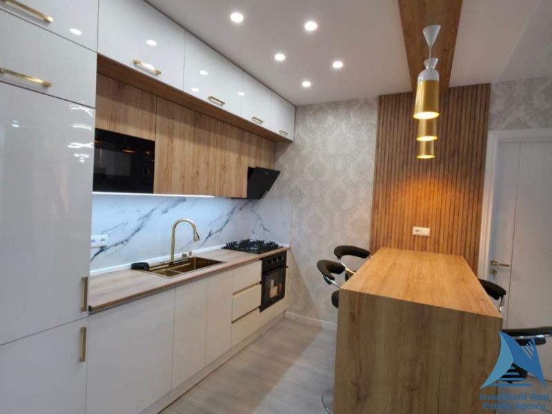 მდგომარეობა: ახალი რემონტით — უცხოვრებელი ბინა, ჩაშენებული ავეჯი და თანამედროვე ტექნიკა, 3 ტელევიზორი, 3 კონდინციონერი, ჩაშენებული მაცივარი, ჭურჭლის სარეცხი მანქანა, მიკროტალღური ღუმელი, ცენტრალური გათბობა (გაზის ქვაბით)