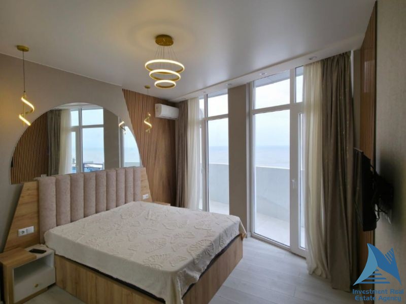გეგმარება: 2 დიდი, ნათელი საძინებელი, ფართო მისაღები ოთახი, 2 დიდი აივანი — ზღვის ულამაზესი პანორამული ხედით, 1 სველი წერტილი