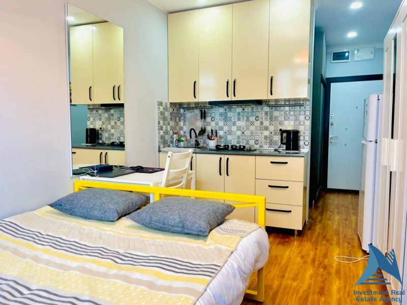 იყიდება სტუდიოს ტიპის ბინა ზღვისპირის ქუჩაზე. ავეჯითა და ტექნიკით. 27 მ2. მე4 სართული. 40000$