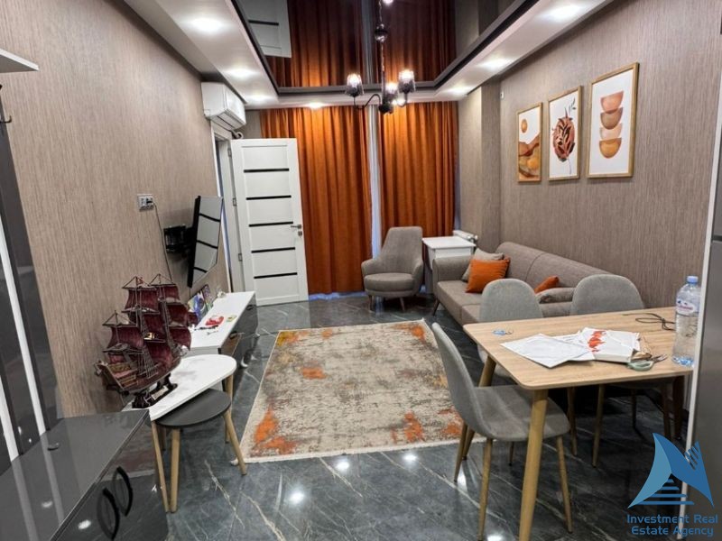 იყიდება ბინა ბათუმში, აეროპორტის გზატკეცილზე, ევრო რემონტითა და თანამედროვე დიზაინით, ბინა აღჭურვილია ავეჯითა და ტექნიკით, აქვს ერთი საძინებელი. საერთო ფართი 47მ2.