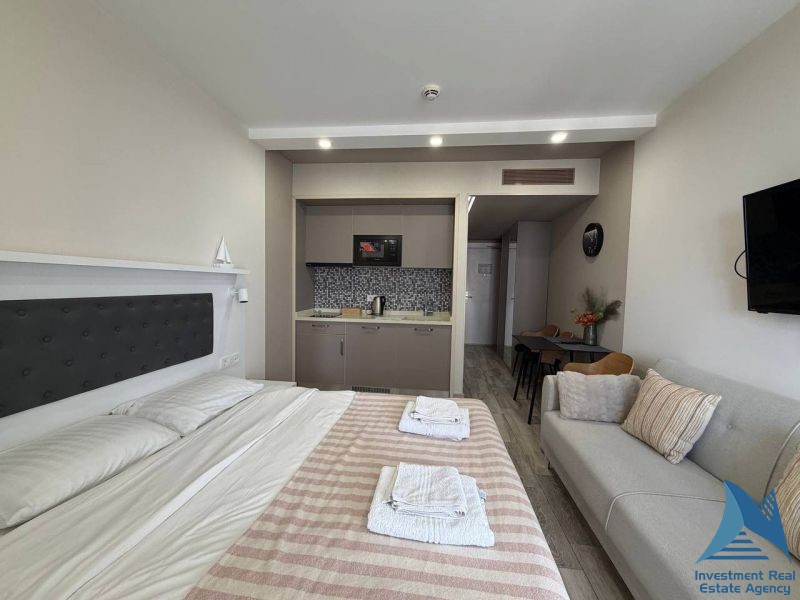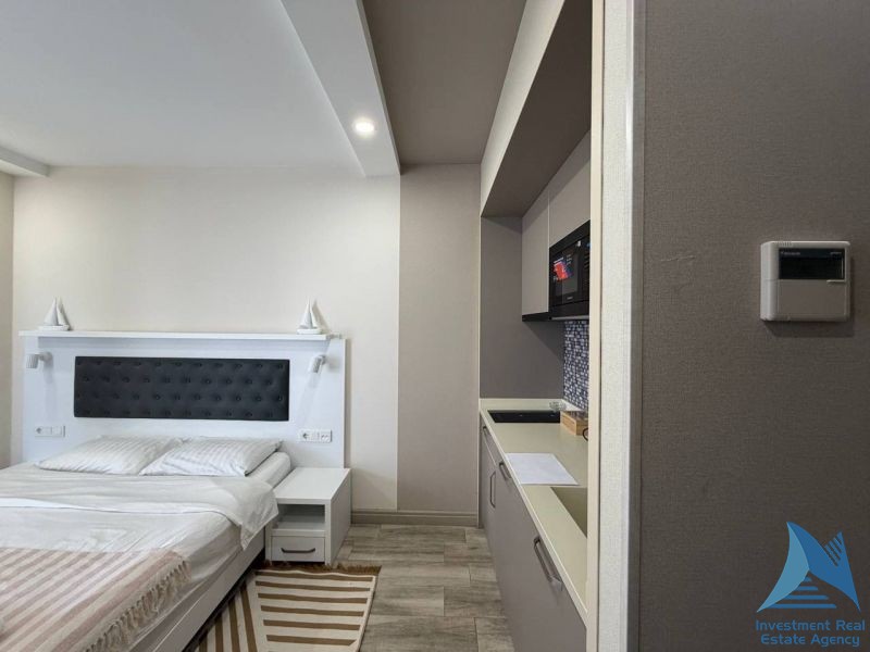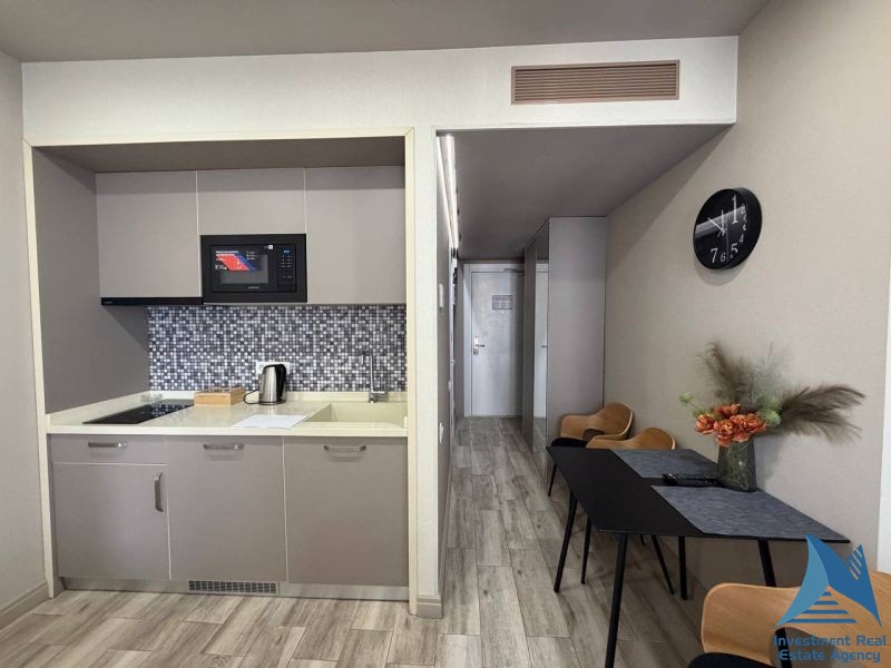 იყიდება სტუდიო ტიპის აპარტამენტი ბათუმში, ალიანს პალასის შენობაში. ბინა არის ნათელი და მყუდრო, კეთილმოწყობილი ყველა საჭირო ავეჯითა და ტექნიკით. საერთო ფართი 29კვ.მ