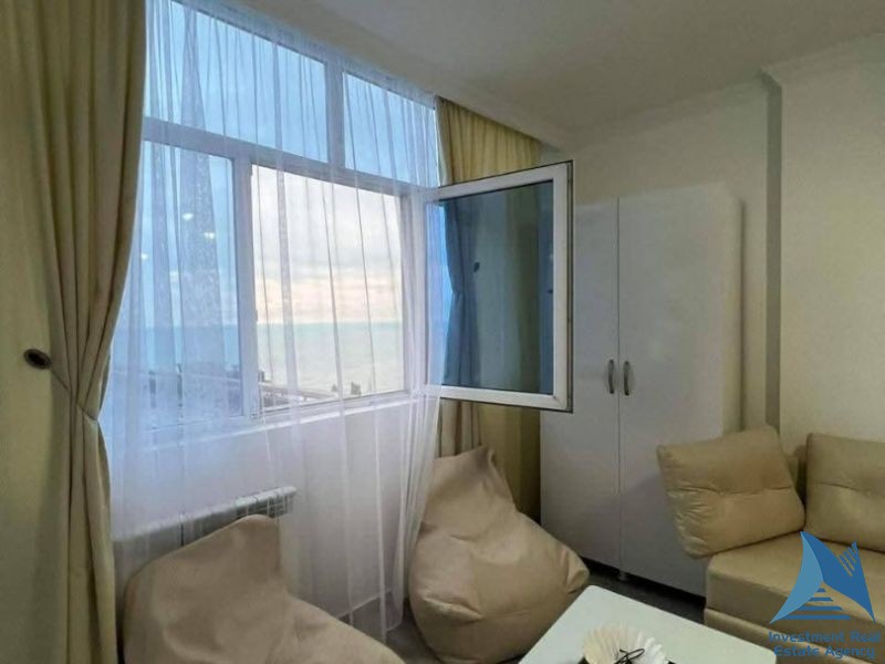 იყიდება სტუდიო ტიპის ბინა ბათუმში, კობალაძის ქუჩზე, ზღვის პირველ ზოლში, სრულად კეთილმოწყობილი ავეჯითა და ტექნიკით. საერთო სივრცე:30კვ.მ