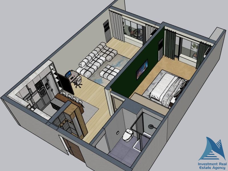 მდგომარეობა: მწვანე კარკასი (კომუნიკაციები: დენი, წყალი და გაზი შეყვანილია).