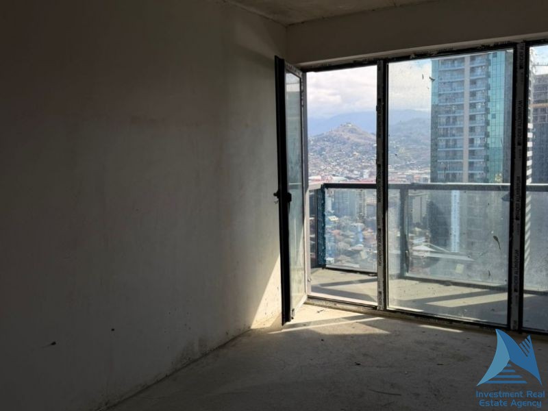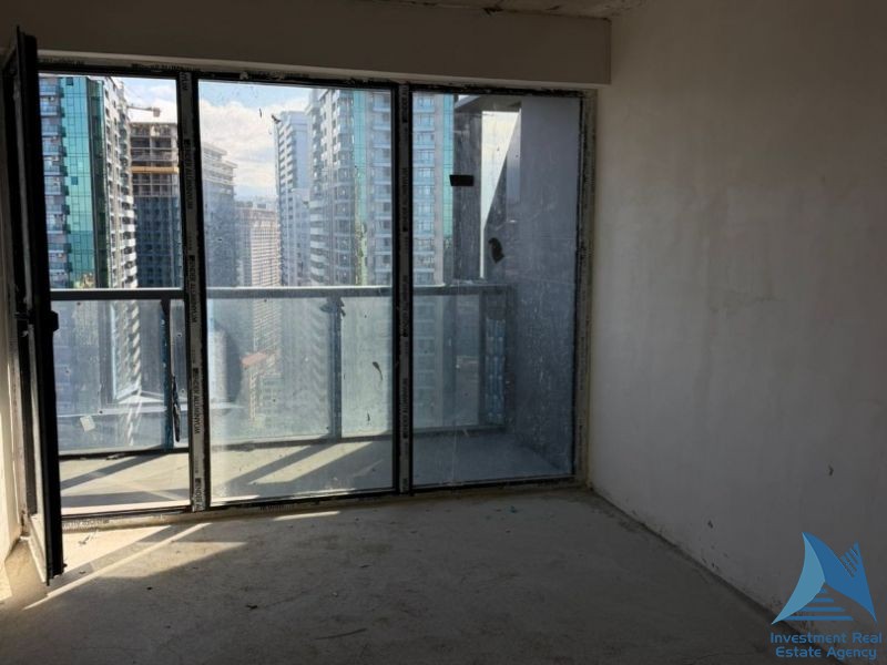 იყიდება 34.5 კვ.მ ფართის ბინა ტბელ აბუსერიძეზე, BLUE SKY TOWER-ის შენობაში, შავი კარკასის კონდიციაში.