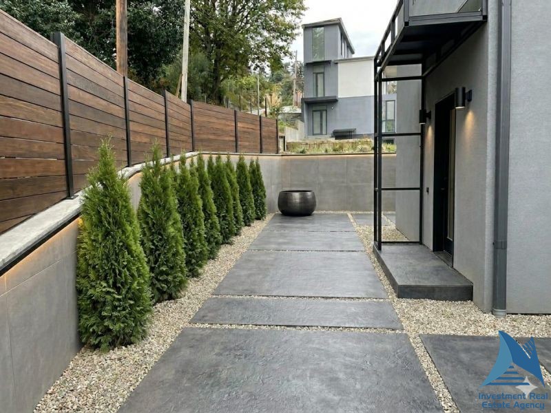 ეზოში არის მზა ავტოსადგომი და არის საცურაო აუზის აშენების შესაძლებლობა.