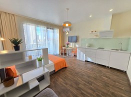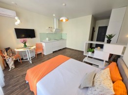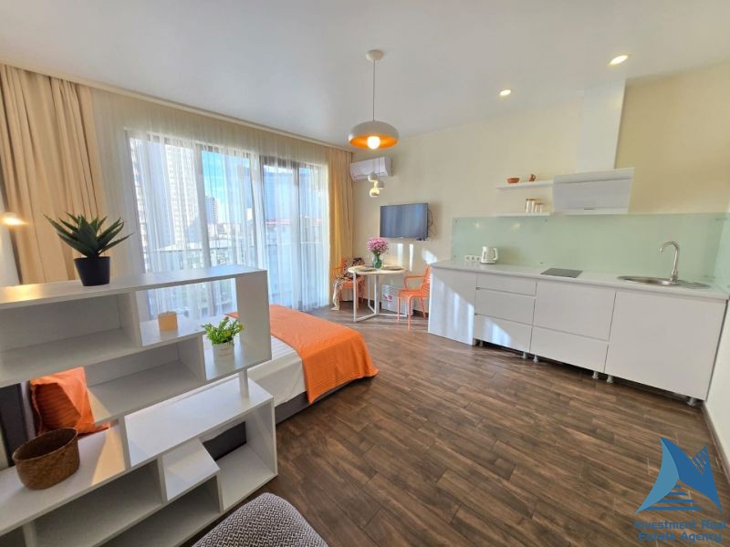 იყიდება სტუდიოს ტიპის ბინა Next Orange-ში, ინასარიძის ქუჩაზე, ზღვასთან და ახალ ბულვართან ახლოს. სრული კოფორტით. 33 მ2. მე9 სართული. 57500$