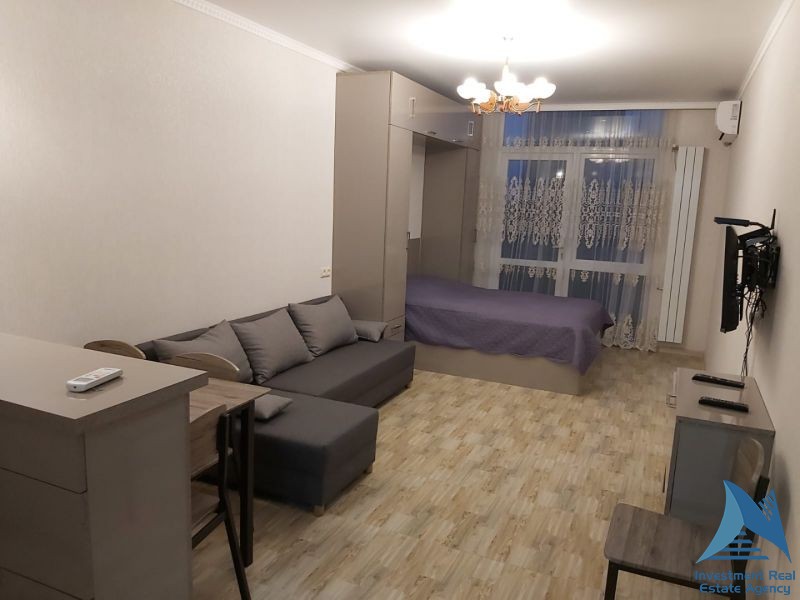 ქირავდება წლიურად კომფორტული სტუდიო ტიპის ბინა ზღვასთან ახლოს კობალაძის ქუჩაზე.ახალ კორპუსში.ყველა საჭირო საყოფაცხოვრებო ნივთითა და ტექნიკით,ცენტრალური გათბობით..38მ2.მე–12 სართული.ფასი–600$. შესაძლებელია გაქირავება 6 თვის ვადითაც