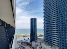 ქირავდება მაისის ბოლომდე სამ ოთახიანი აპარტამენტი შერიფ ხიმშიაშვილის ქუჩაზე Orbi City-ში A ბლოკში მე–12 სართულზე ზღვასთან ახლოს ზღვის ხედით. ბინა აღჭურვილია ყველა აუცილებელი პირობით კომფორტული ცხოვრებისთვის, ავეჯით, ტექნიკით. ბინის ფართი - 55მ2. ფასი–1200$