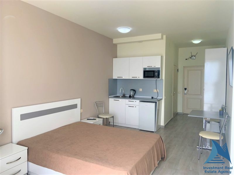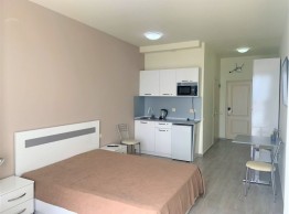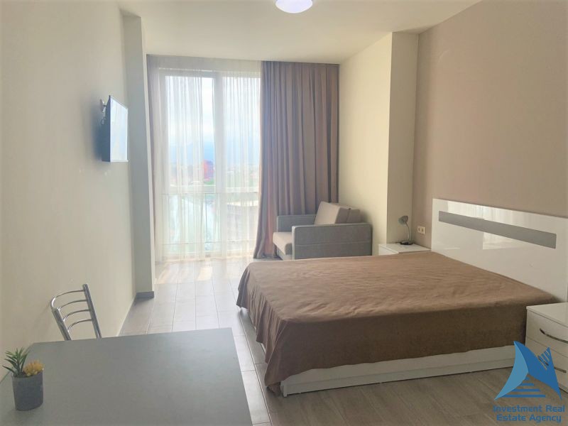 Продается квартира типа студио на ул. Ангиса рядом с Эйфорией у моря и с видом на горы на 14-ом этаже. Можно выделить светлую спальню. Квартира оснащена всеми необходимыми условиями для комфортного проживания, мебелью, техникой. Площадь квартиры - 32 м2. Цена - 28,800$